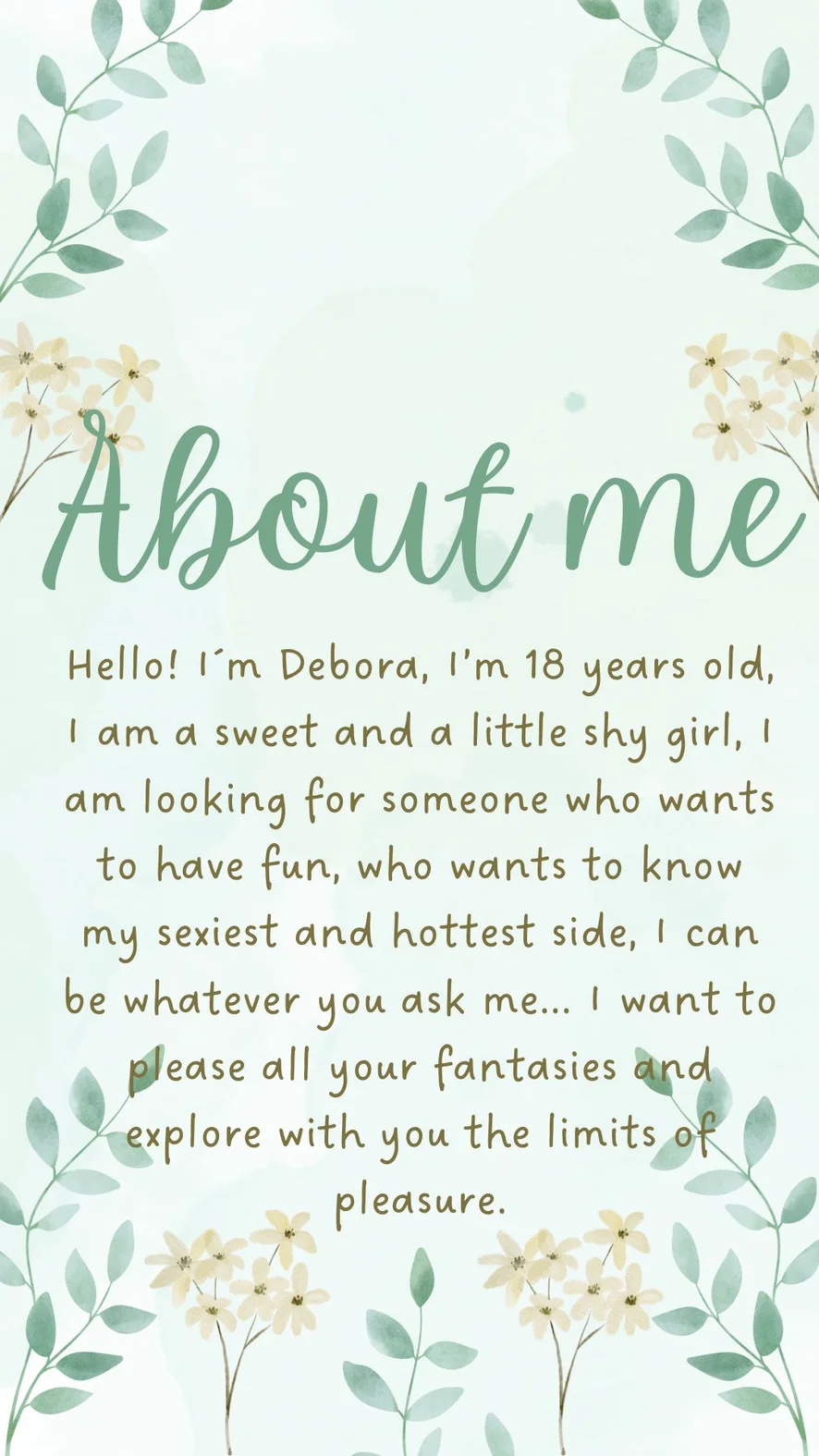 I am a sweet and a little shy girl, I am looking for someone who wants to have fun, who wants to know my sexiest and hottest side, I can be whatever you ask me... I want to please all your fantasies and explore with you the limits of pleasure.
